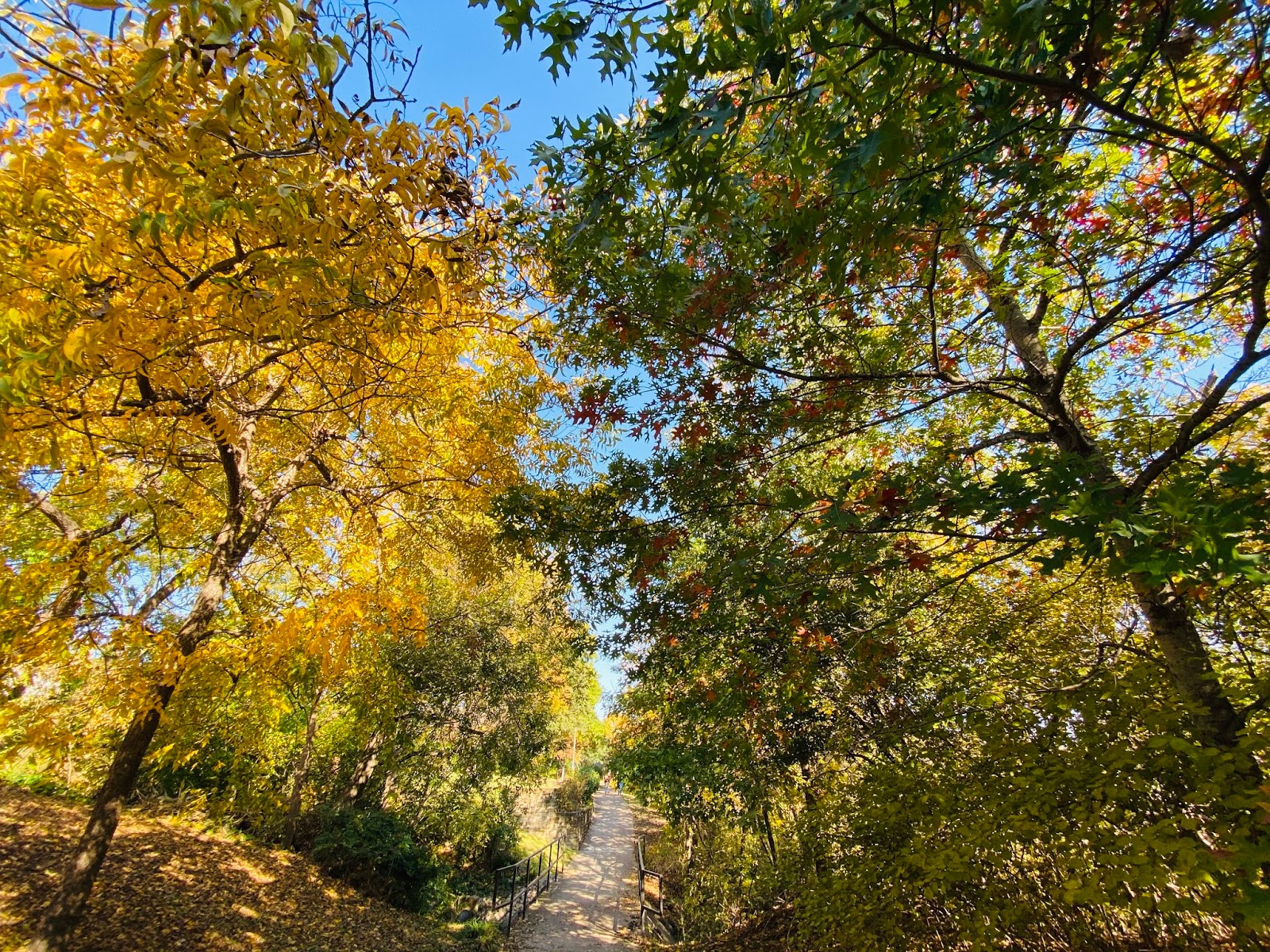 | I liked how coming out of the shaded darkness of the bridge, you were met with bright golden leaves and sun. |